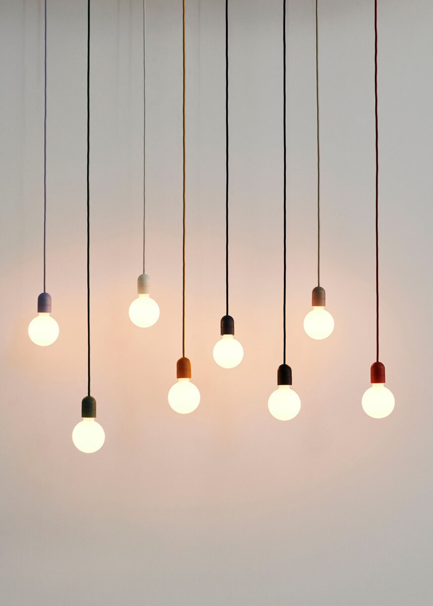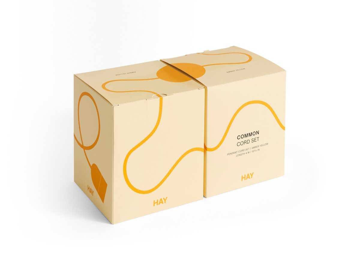 The Common Pendant Cord Set by HAY is a versatile accessory compatible with multiple lampshades. Its minimalist design allows for creative lighting arrangements.