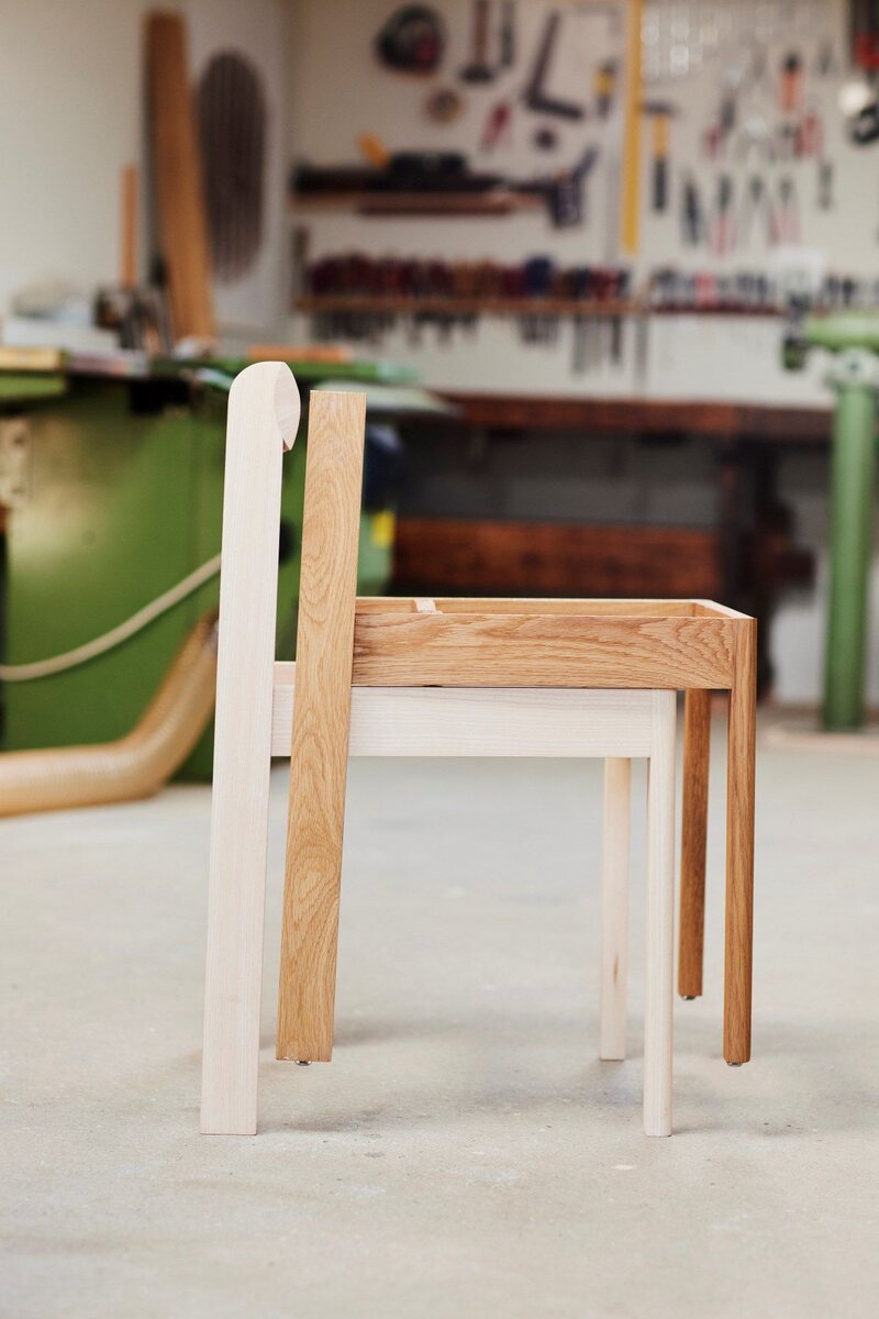 The Stackable Wooden Chair by Form & Refine is an archetypal piece made entirely of wood. Its uniquely shaped seat, inspired by human anatomy, promotes good posture and comfort. The solid, organically shaped backrest adds a minimalist and personal touch. Strong, solid legs combined with a veneer seat contribute to the chair’s surprising lightness and visual sharpness. The exquisite backrest is steam-bent and crafted from a single solid piece of wood.