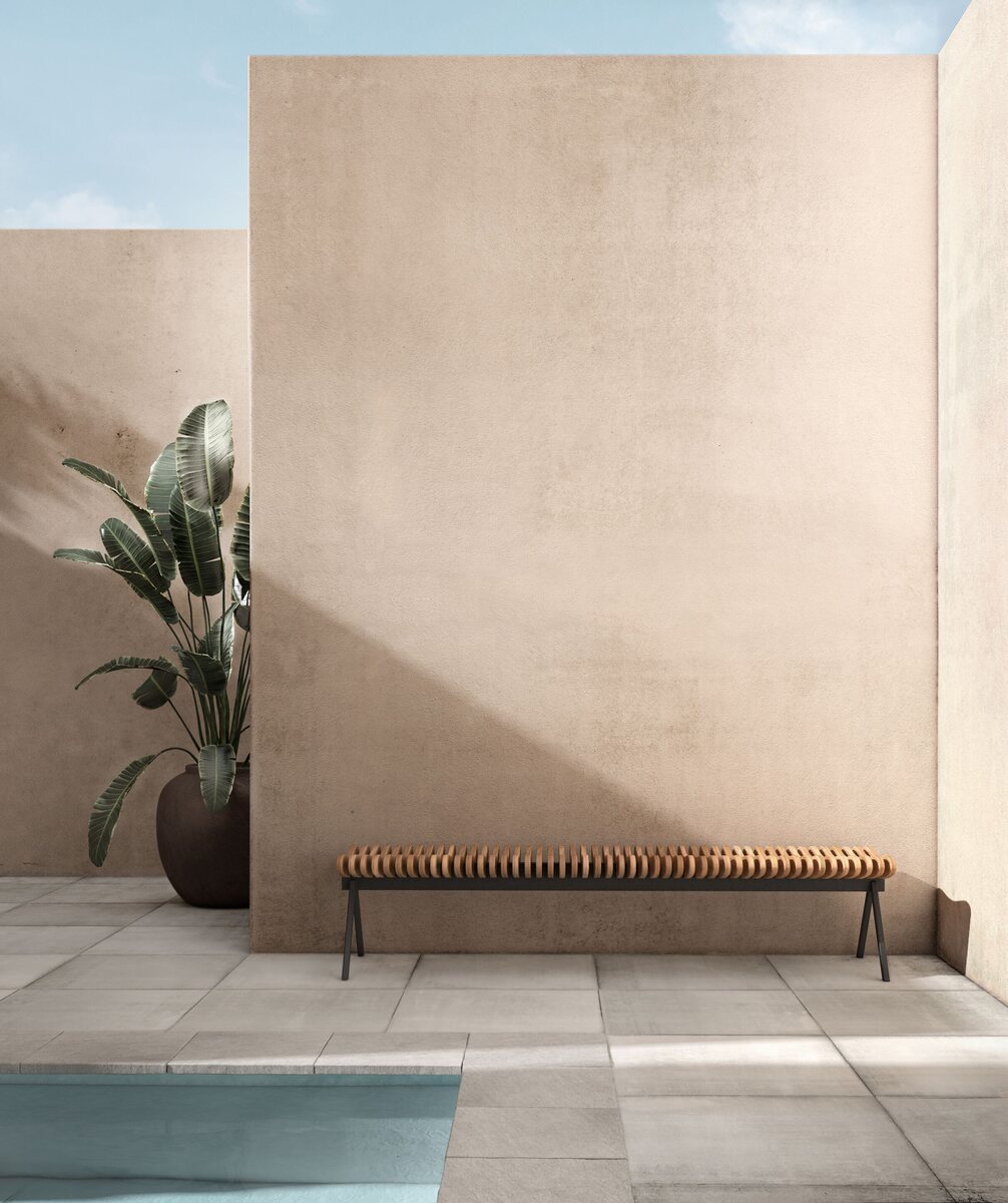 Designed by Caroline Voet for PER/USE, the Teak Slatted Garden Bench combines a stainless-steel base with flowing and elegant wooden parts, creating an unexpected visual effect. Despite its striking appearance, it maintains comfortable and ergonomic qualities. This bench serves as an inspiring design object suitable for homes, business locations, or public spaces.